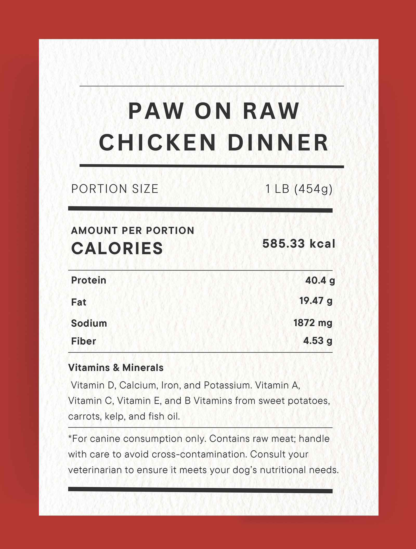 A balanced blend of 80% chicken meat, 10% bone, 8% organ, and 2% veggies. Perfect for all life stages, this meal is highly digestible and great for picky eaters.